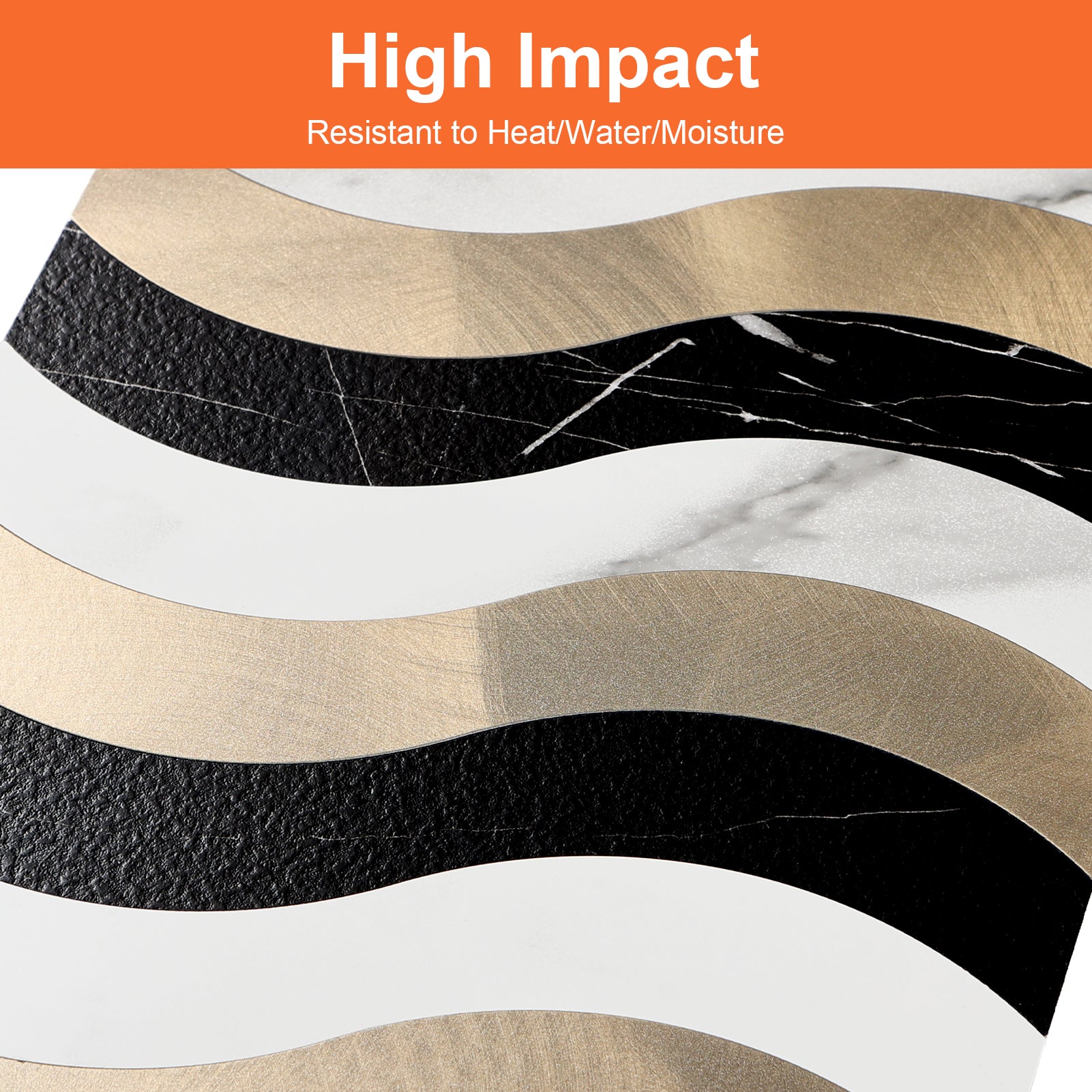 Elevate your walls instantly—simply peel, stick, and impress. Our vintage-style black marquina white marble glod wavy tiles add industrial flair to any smooth surface, whether it's a kitchen backsplash or an accent wall. No mess, no hassle—just stunning design. Ideal for renters and DIY lovers who prioritize style. See your space change in minutes.