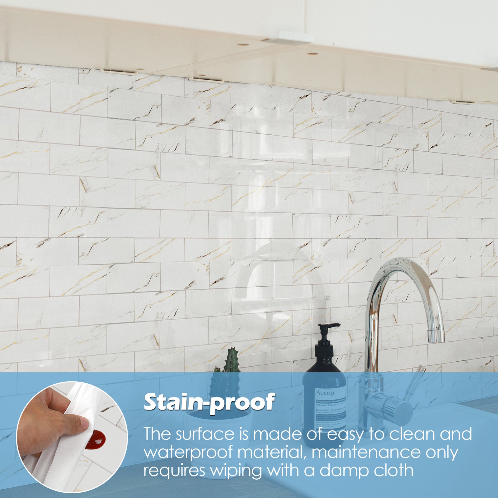 12" X 12" White Stone with Gold Peel and Stick Backsplash Linear Blend Tile