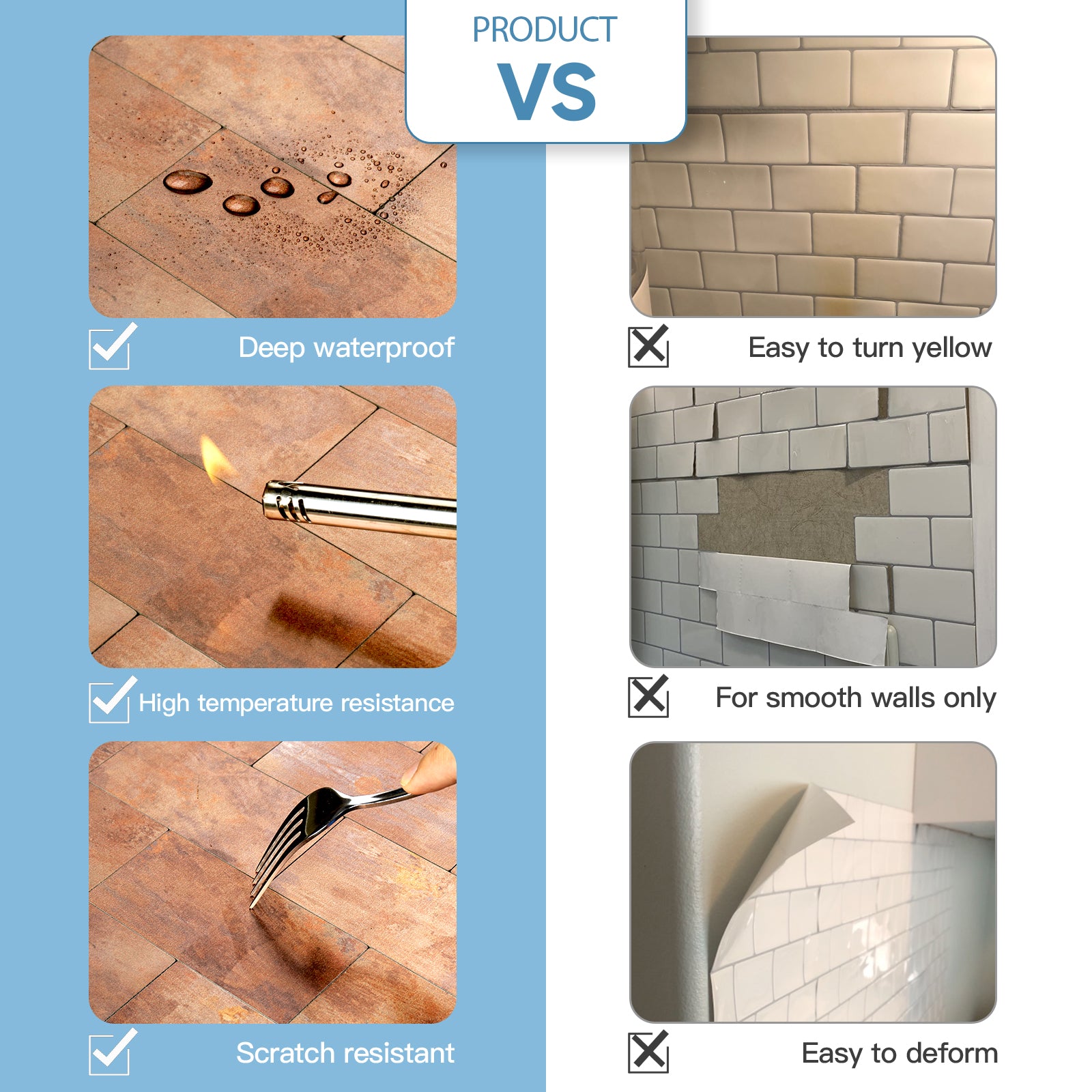 • Stunning Copper Texture: Realistic copper surface perfectly simulates real decorative tiles, lightweight and flexible.