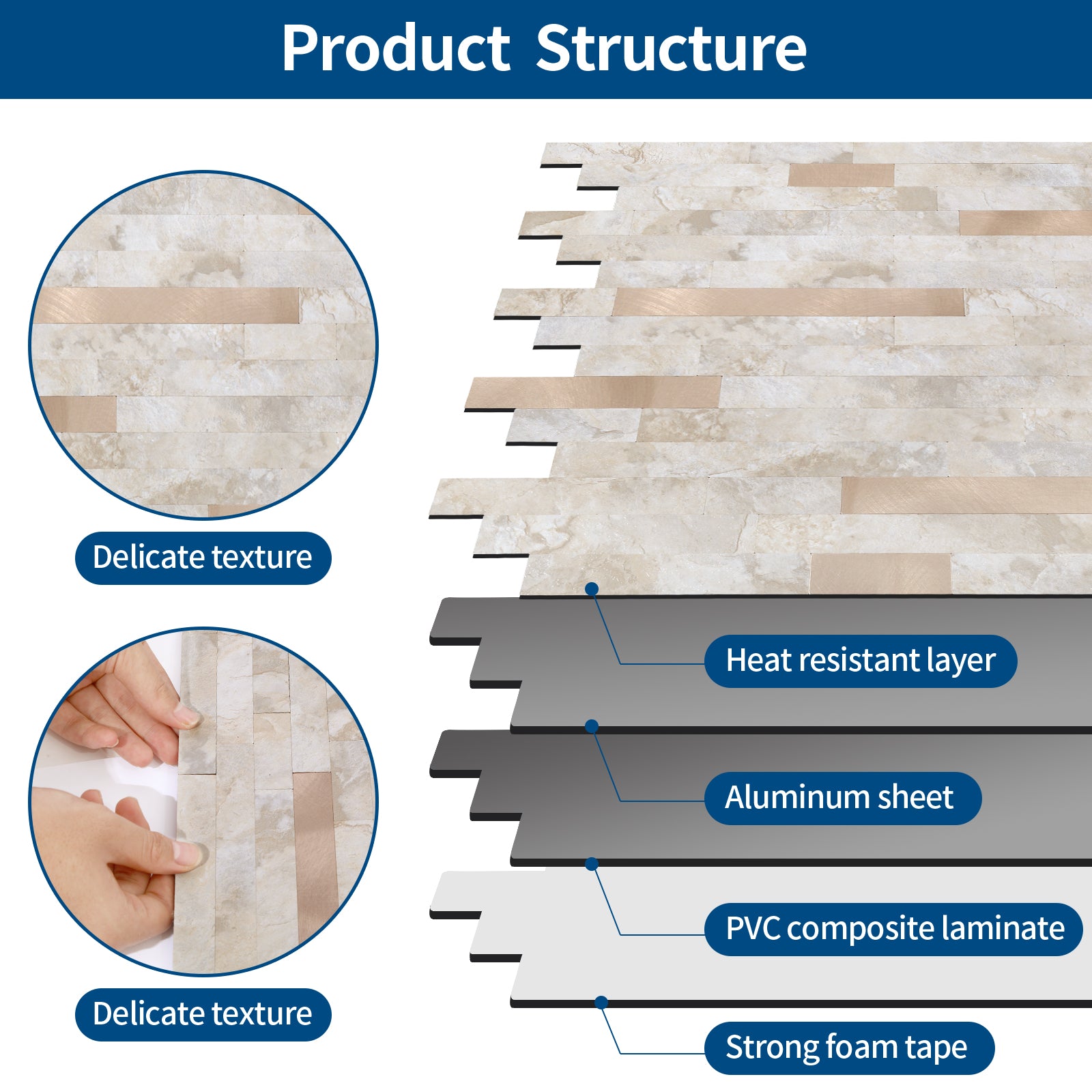• WIDELY APPLICABLE - Stone Metal Tile for Kitchen, Living Room, TV Wall, Bedroom, Bathroom, Laundry Room, Hallway, Office, RV/Camper, et.