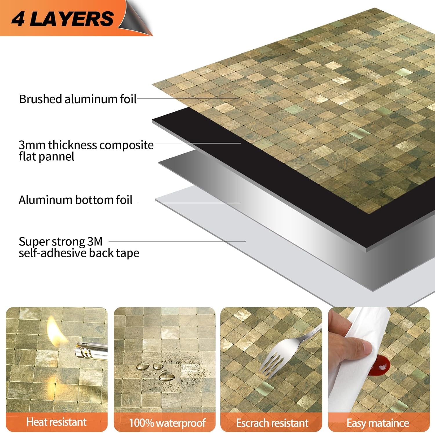 • Waterproof & Heat Resistant: Made of premium PVC composite laminate, this self-adhensive mosaic tiles feature waterproof, heat-resistant, stain-resistant, and scratch-resistant — suitable for daily household use.