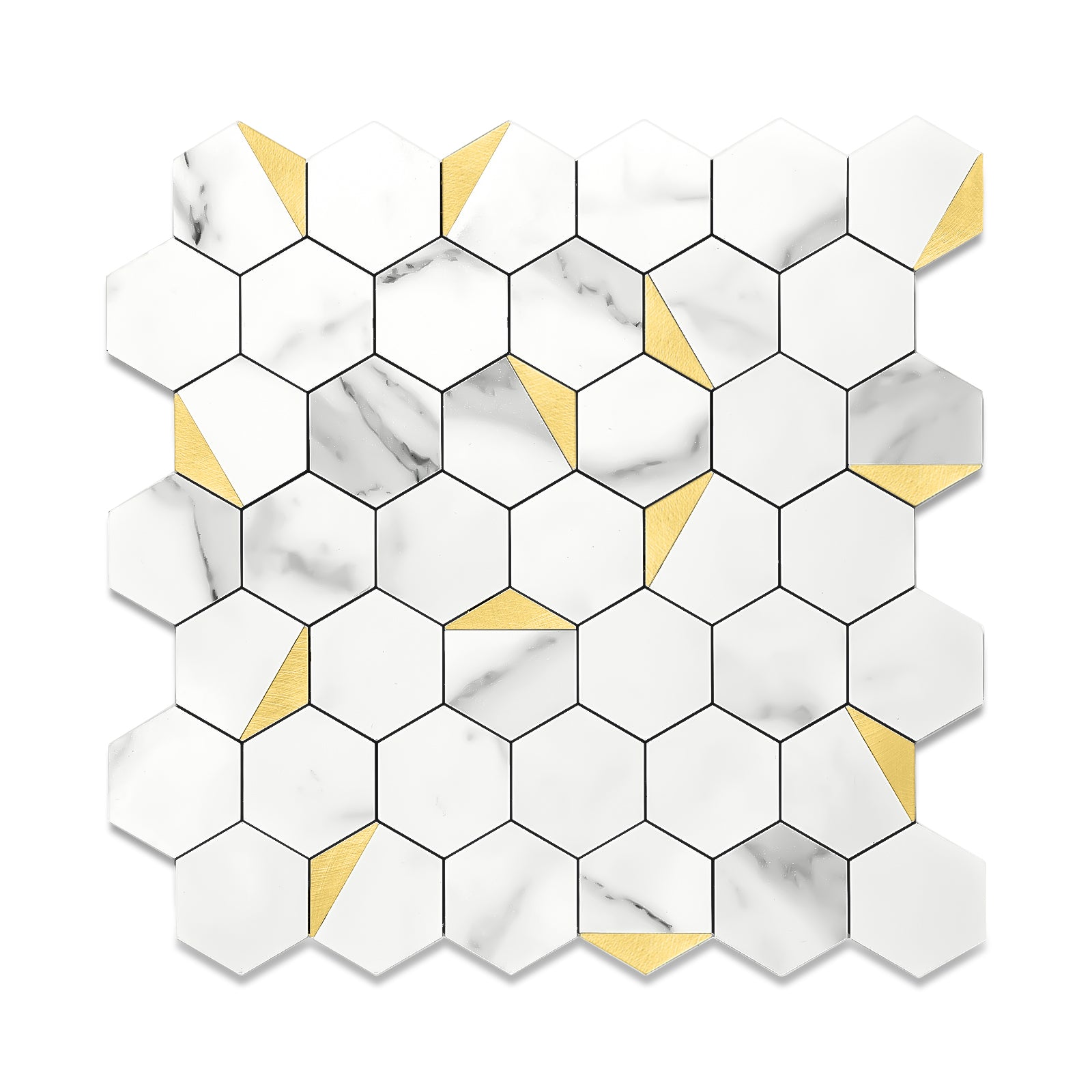 12.2" x 11.6" Hexagon Peel and Stick Backsplash Tile Fishbelly White Metal Gold