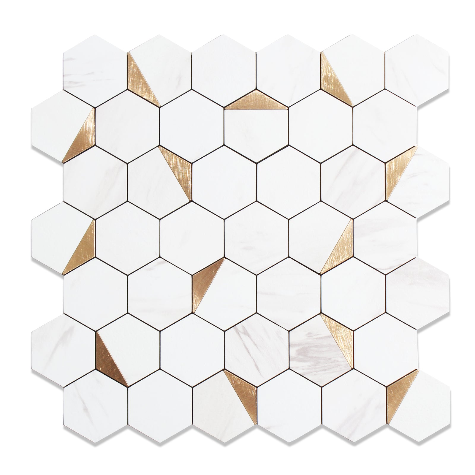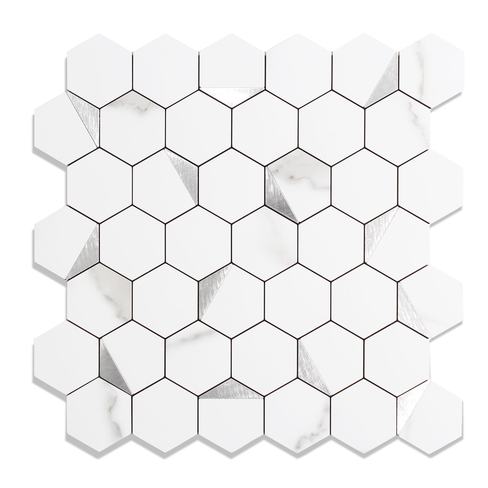Hexagon Peel and Stick Backsplash Stone Texture Mixed Metal 3D PVC Wall Tile