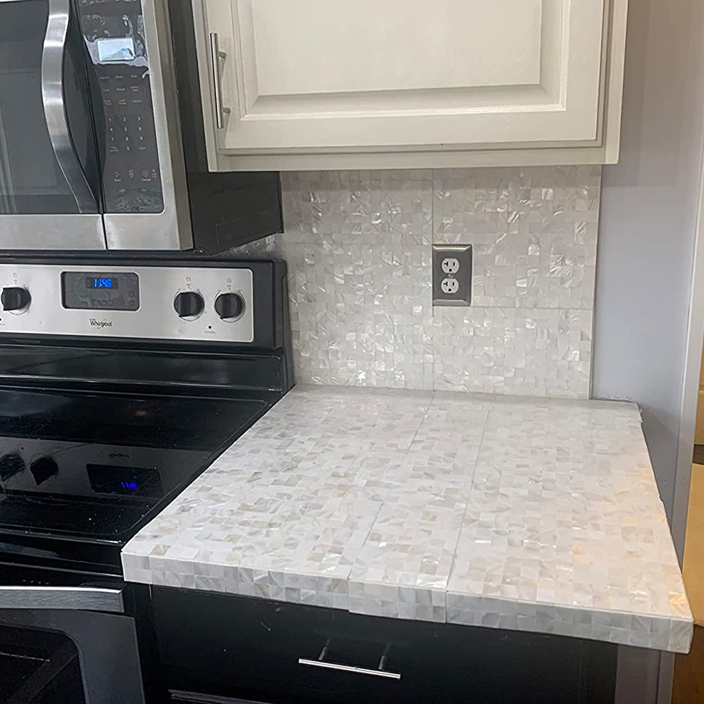 Add a unique beauty to your kitchen with our Mother of Pearl Backsplash Tiles. Crafted with a shell mosaic, these peel-and-stick tiles offer a mother-of-pearl effect and an easy-to-install, mess-free solution for any design project!